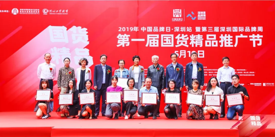 2019年5月10日,【第一届“国货精品”推广节】在深圳福田区举办启动仪式,现场发布了国货精品推广节系列品牌荣誉榜单,并为上榜企业颁奖,共设立“国货精品”十佳影响力品牌、十佳新锐品牌、十佳潜力品牌十佳文化传承品牌等奖项。
