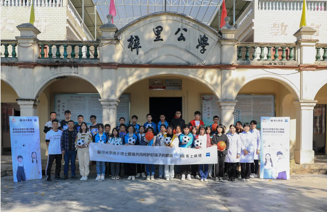由博士眼镜捐赠镜架,蔡司光学捐赠镜片,将眼镜加工完成后邮寄给当地师生。除了赠眼镜,还有足球、篮球、跳绳等体育用品。