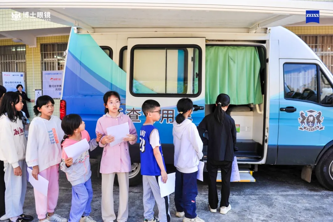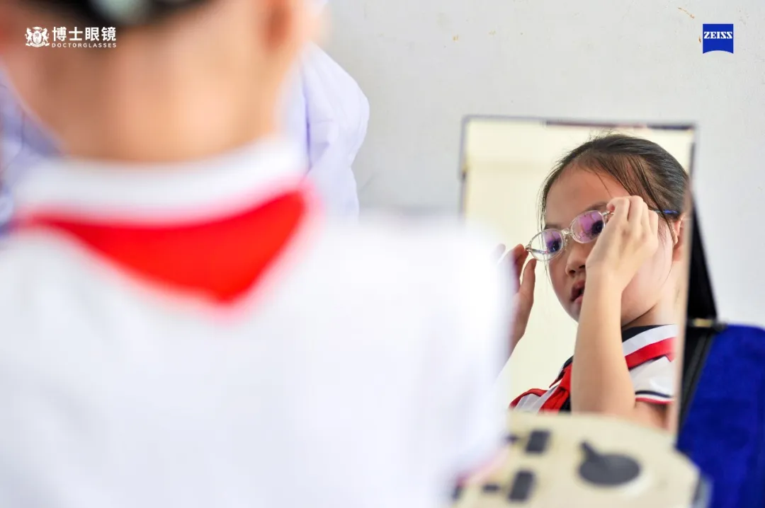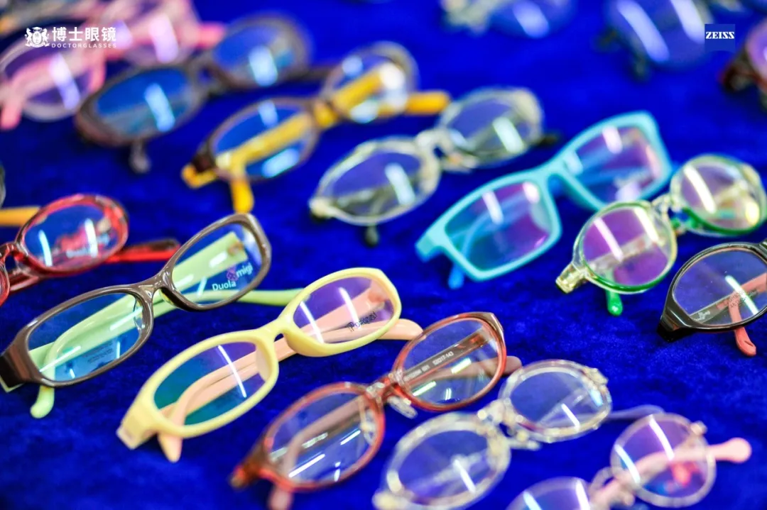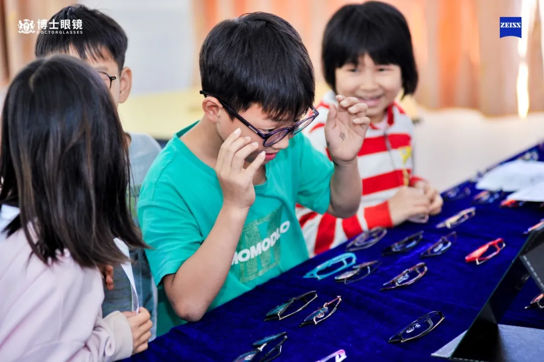 在视力筛查环节,蔡司光学和博士眼镜带去专业的验光师队伍,为当地小朋友提供专业的验配服务。博士眼镜还特地以“流动验光车”的形式,将验光室“搬”到现场,为在筛查中存在近视风险的孩子进行更精确的二次验光检查。考虑到每个孩子的喜好和风格不同,现场博士眼镜的工作人员还贴心地准备了颜色丰富、款式多样的眼镜框,搭配上蔡司光学高品质的镜片,让每个近视的孩子都能免费获得一副适合自己的眼镜。